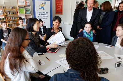 Pour N Vallaud-Belkacem, la Semaine de la presse est l’occasion de "discuter avec els élèves ce que veut dire la liberté de la presse. Faire la part de l’information et de la désinformation. Dire l’importance d’éduquer le regard des enfants , les aider à se forger une opinion". La ministre affirme veiller à ce que cette éducation aux médias soit comprise dans les futurs programmes d’éducation morale et civique et à ce que les professeurs l’introduisent dans leurs cours dans toutes les disciplines. Elle annonce un partenariat signé le jour même avec France Télévision pour créer un journal quotidien à destination des 8-12 ans et travailler à la formation des enseignants. "On développera les médias collégiens et lycéens car c’est la meilleure façon de comprendre les médias", explique-t-elle. Chaque établissement devrait avoir son blog ou son journal dès l’année prochaine.
