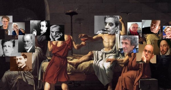 Nous voici maintenant au début d’une fiction dans le style du Banquet de Platon, où j’invite à ma table ceux qui ont contribué à mon livre La vraie vie à l’école : Fernand Cambon, Professeur agrégé d’allemand et traducteur ; Sigmund Freud ; Jacques Lacan ; Philippe Meirieu, pédagogue, Michel de Montaigne, philosophe et Maire de Bordeaux ; Jean-Luc Nancy, philosophe ; Daniel Pennac, professeur et écrivain ; Marcel Proust, Arthur Rimbaud ; Joseph Rossetto, Principal de collège à Bobigny ; Danièle Sallenave, écrivaine ; Paul Valéry, et Stefan Zweig.