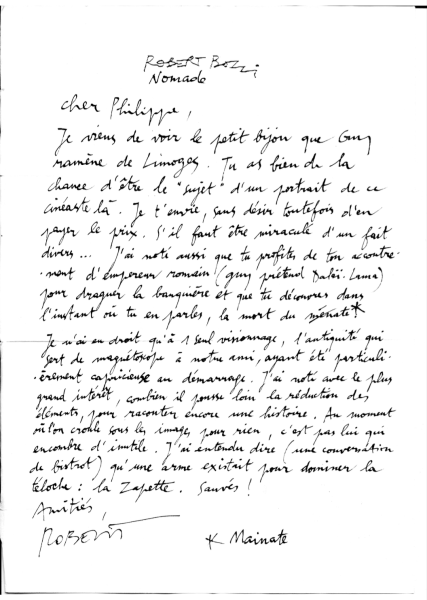 « Philippe est mon ami, dans la vie quotidienne, il est d’une très grande discrétion, j’apprécie beaucoup ses silences, avec parfois de brusques envolées de merle chanteur.