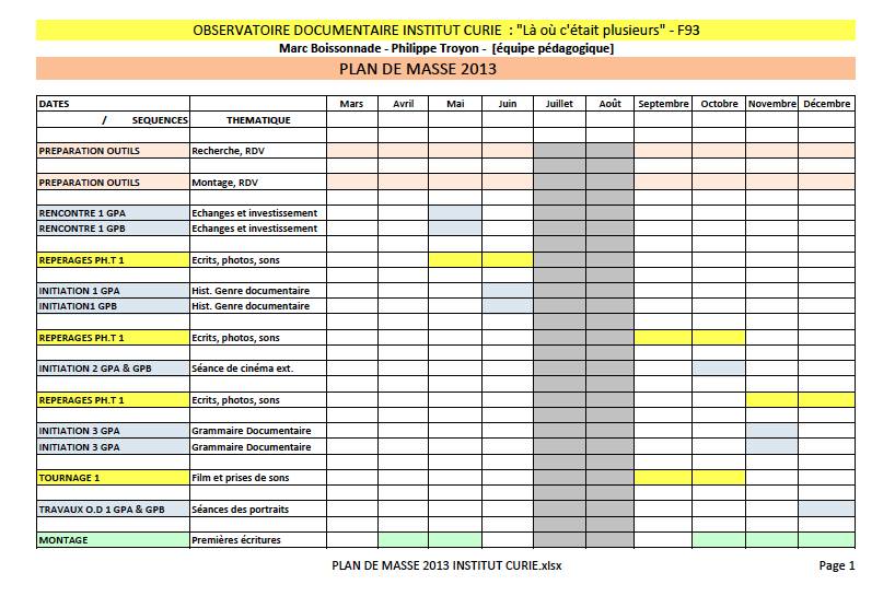Mise en place de l’outil audiovisuel et premières réflexions sur le travail d’observation. Nous souhaitons donc travailler et approfondir nos connaissances sur :