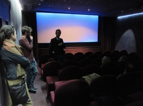 Mélanie Dupas, [communication Le Champo] reçoit les chercheurs de Curie avec Alessandro Comodin au cinéma de quartier Le Champo.