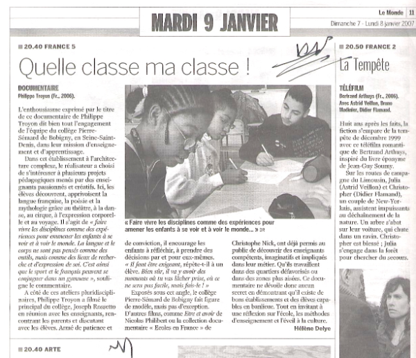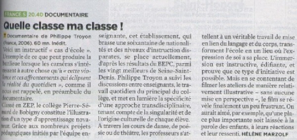 DOCUMENTAIRE QUELLE CLASSE MA CLASSE (60’)
