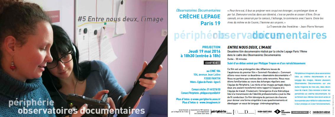 Nous avons été très bien accueilli comme d’habitude au cinéma de Pantin,le Ciné 104, en particulier par Arlène, Moise et Jacky. Nous remercions également le restaurant le Vertigo qui nous a permis de prolonger notre débat avec un rafraichissement en terrasse.