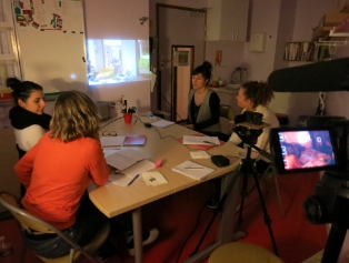 8 heures de rushes ont été tournés. Ils vont être copiés sur DVD pour que l’équipe puisse les voir, les décryptés. Chacune va écrire sur un cahier de dérushage de telle sorte qu’elle s’imprègne au mieux de toute la matière et qu’elle se prépare au montage qui sera confié à un monteur professionnel. Ce dérushage collectif, place l’équipe dans le rôle de réalisatrice et servira à « argumenter » sur le sens à donner au film.
