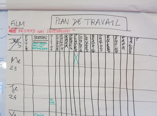 Le plan de travail doit faire également apparaitre le roulement entre les professionnelles qui prendront sur à tour une fonction précise lors du tournage :