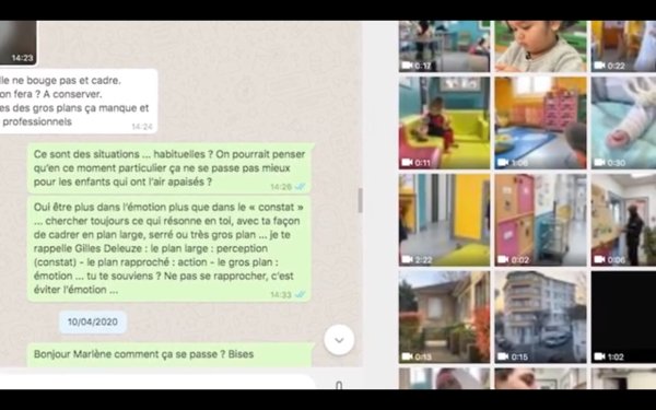 Avec le soutien du service des crèches départementales, plusieurs professionnelles initiées au cinéma documentaire (dans le cadre des Observatoires documentaires de Périphérie) ont trouvé important de « documenter » cet entre-temps exceptionnel dont elles ont été les témoins directs. C’est ainsi que cette démarche « spontanée » a donné lieu à la création d’un Observatoire en Ligne proposé par Périphérie. L’idée a été de filmer de façon réfléchie et cinématographique des situations diverses à l’intérieur de ces crèches avec l’accord des professionnelles de la petite enfance, des parents et avec pour outil le téléphone portable accompagné d’un suivi permanent de Périphérie [Philippe Troyon, cinéaste et Guillaume Lebel (chef-monteur)].
